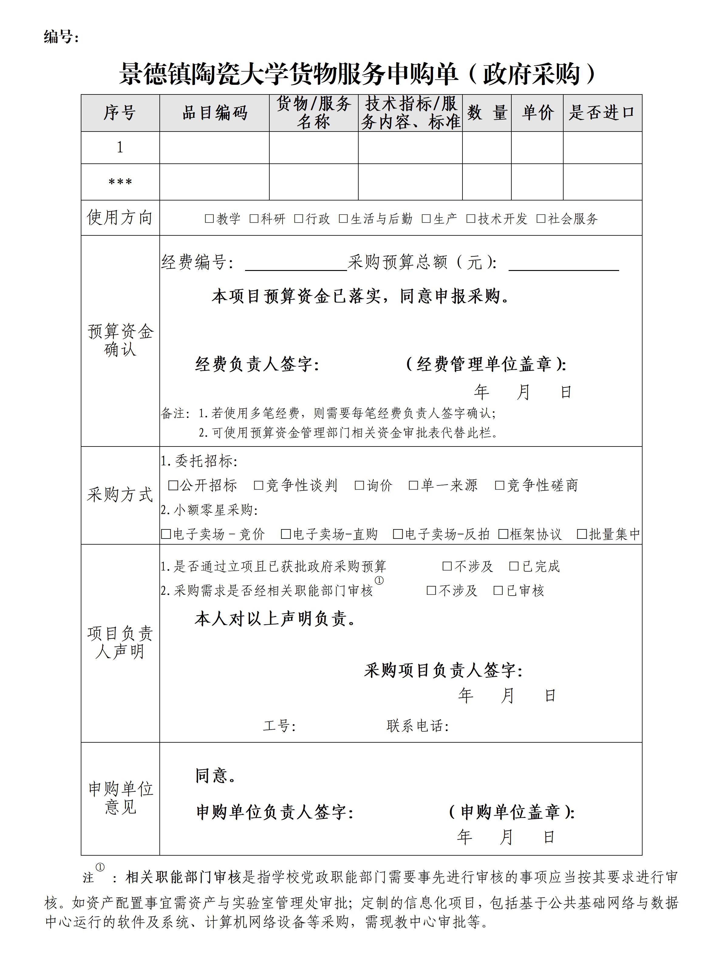 景德镇陶瓷大学货物服务申购单(政府采购).docx